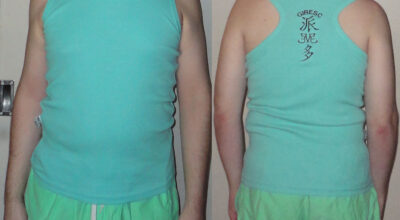 En esta camisilla de RIB la parte lisa es el lugar del encaje, parece más para nena