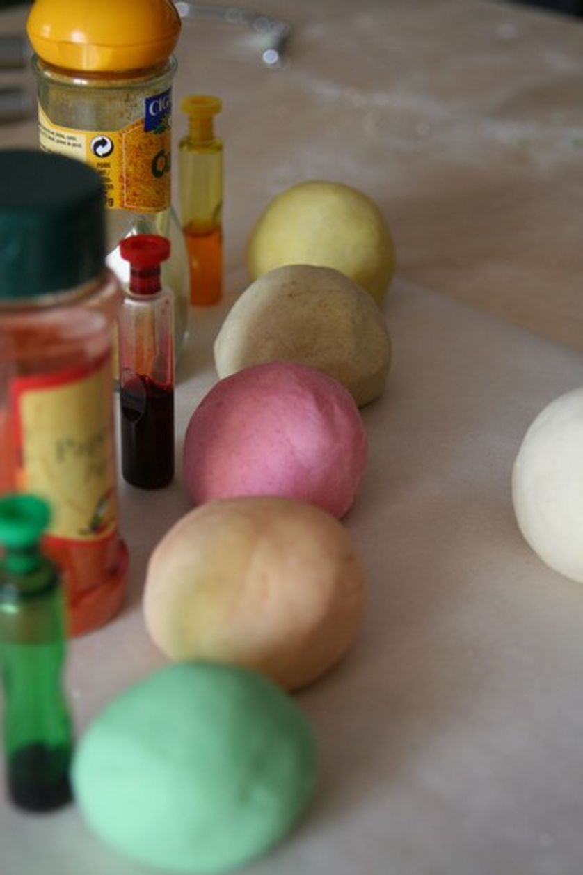 Para colorear la masa, puedes añadirle colorante alimenticio (si amasas con los dedos, lávate rápidamente después porque mancha mucho) o especias.
