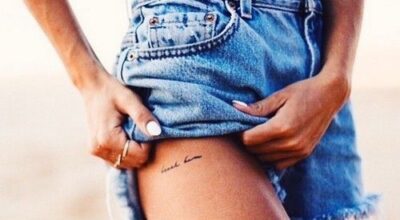 A la hora de elegir el diseño, busca aquellos que sean ligeros: dibujos alargados o frases de tamaño moderado. Eso sí, en la parte del muslo, podemos permitirnos diseños más anchos.