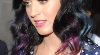 Katy Perry sumerge las puntas de su cabello en tonos morados y azules en Septiembre 2010