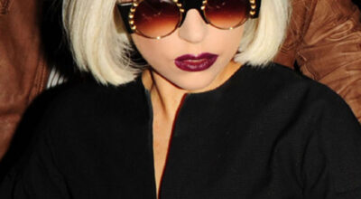 Lady Gaga de corto y rubio platino al salir de su hotel en Londres, Nov 2010