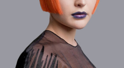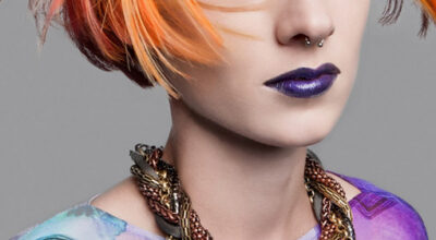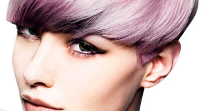 Pelo morado peinado con ondas por Andrew Barton.