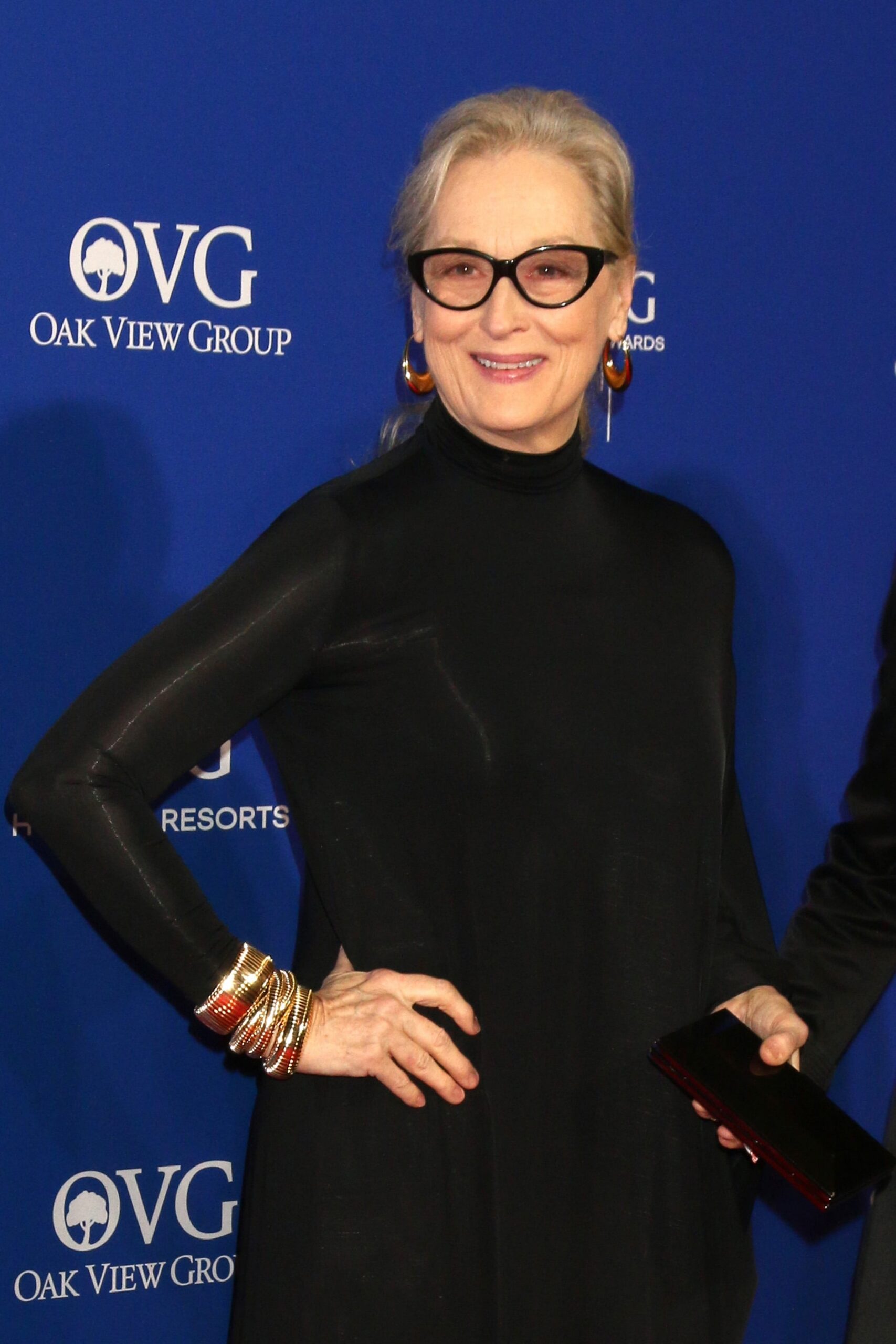 3. Si en tu caso, prefieres una opción elegante y clásica que deja el rostro despejado, el moño bajo elegante que lleva Meryl Streep, es ideal. Queda perfecto con gafas de monturas gruesas y oscuras, que aportan equilibrio y distinción al rostro.