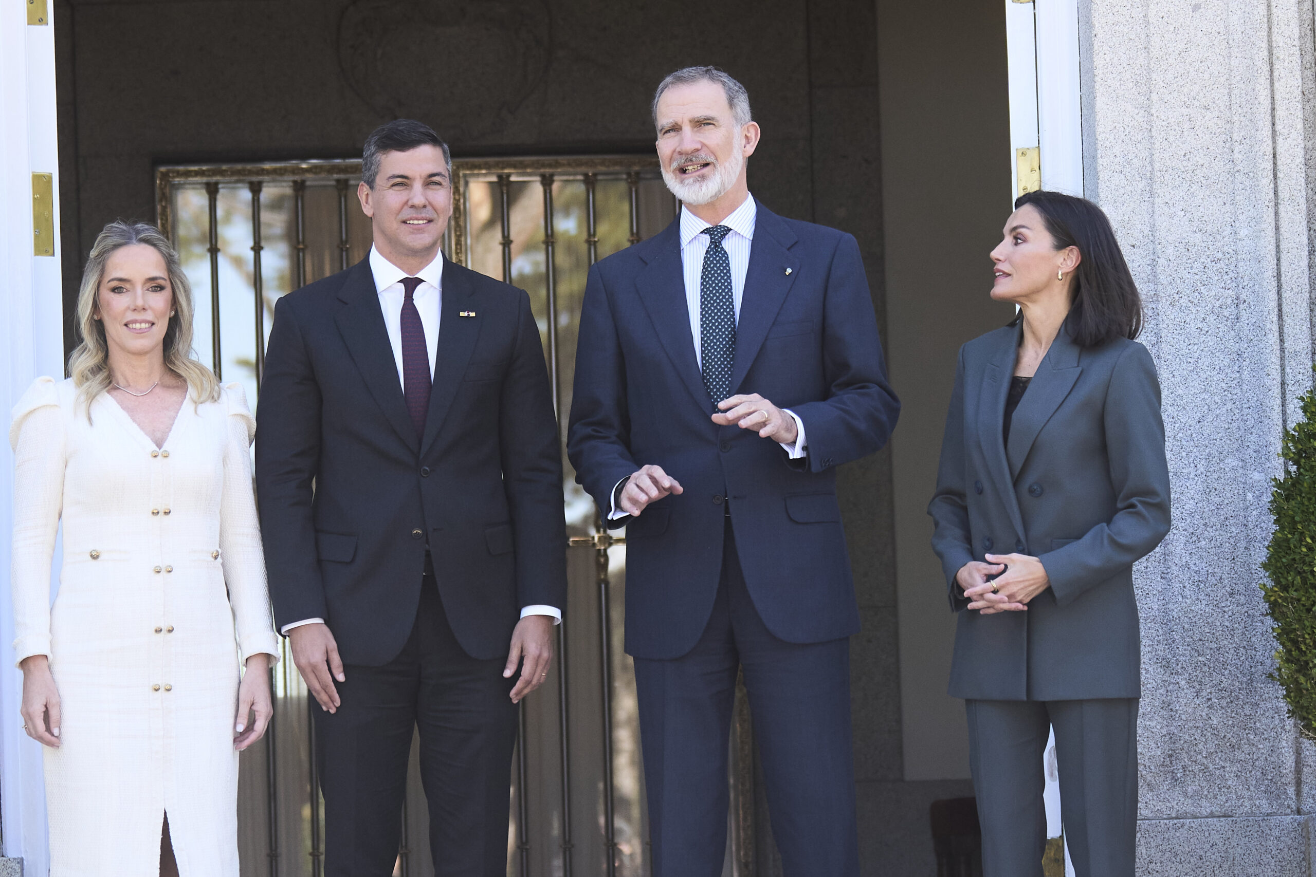 Un corte de pelo rejuvenecedor y un estilismo sobrio y elegante han sido la elección de Doña Letizia para recibir al presidente de Paraguay, Santiago Peña Palacios, y a su esposa, Leticia Ocampos, en un almuerzo celebrado en el Palacio de la Zarzuela.