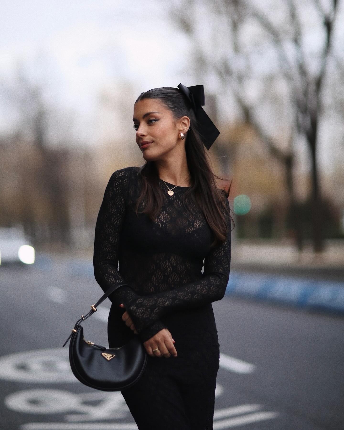 Si te declaras amante incondicional del estilo preppy, tenemos el peinado ideal para ti. Hablamos del semirecogido con cola alta adornada con un gran lazo. En este caso, la influencer Dulceida ha optado por peinar todo el pelo hacia atrás y dejar bien lisa la media melena que queda suelta. ¡Es ideal!