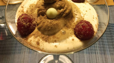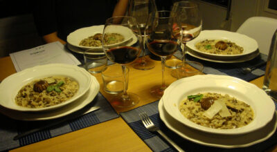 Disfrutamos de una deliciosa cena que nos preparó Bruno, nuestro chef. Él se encargó de todo, de hacer la compra, de traer todos los utensilios de cocina, de poner la mesa y de preparar todo el menú en directo… ¡en una minúscula cocina! Durante toda la velada estuvo pendiente de nosotras, nos explicó los secretos de cada plato, compartió trucos de cocina y nos sorprendió con el postre.