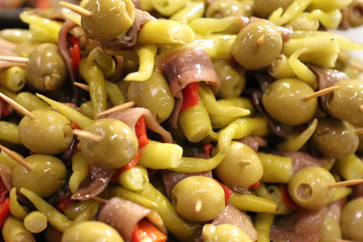 1. Pintxos: En cualquier barra de bar vasco encontraremos una amplia selección de estas pequeñas delicias. Muy recomendables los bares de la parte vieja de cualquiera de las tres capitales vascas para acertar de pleno. Importante no perderse las gildas, antxoas, el txangurro, la tortilla poco cuajada y bañarlo todo con txikitos de vino o zuritos de cerveza.