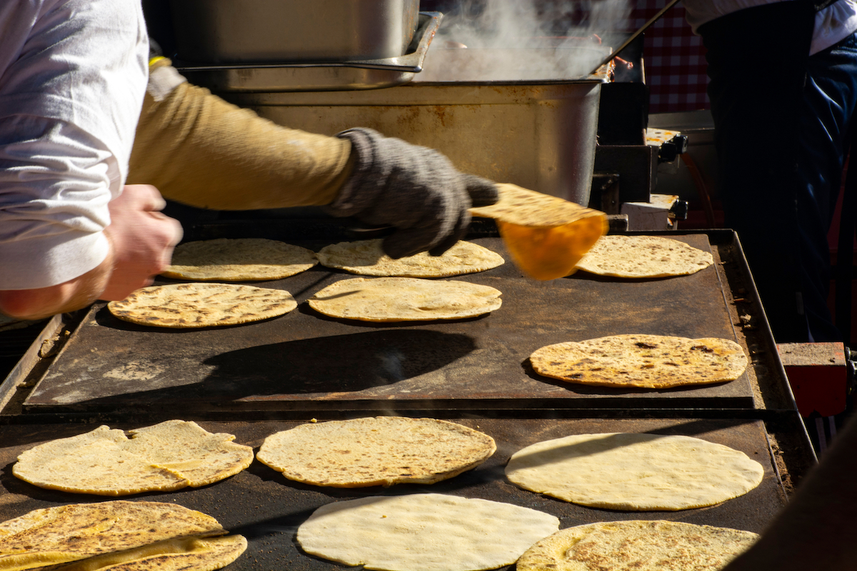 7. Talo: Tortitas hechas con harina de maíz que sirvieron en el pasado a modo de pan. Muy populares en las fiestas mayores de de San Prudencio, en toda Álava; las de Santo Tomás, en Donostia, o las de San Andrés en la localidad guipuzcoana de Eibar. Se acompañan con chistorra, queso o chocolate cuando se sirven como postre.