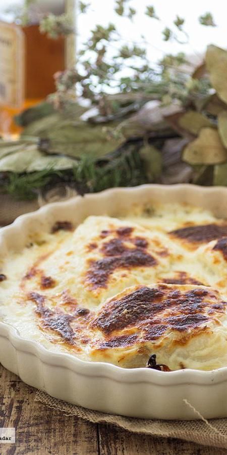 A continuación, cubrimos las patatas con leche y cubrimos la bandeja con papel de aluminio. Llevamos al horno durante unos 45 minutos a 180º. Pasado este tiempo, las sacamos, retiramos el papel de aluminio y agregamos la nata. Volvemos a llevar al horno y mantenemos dentro hasta que la superficie esté bien dorada.