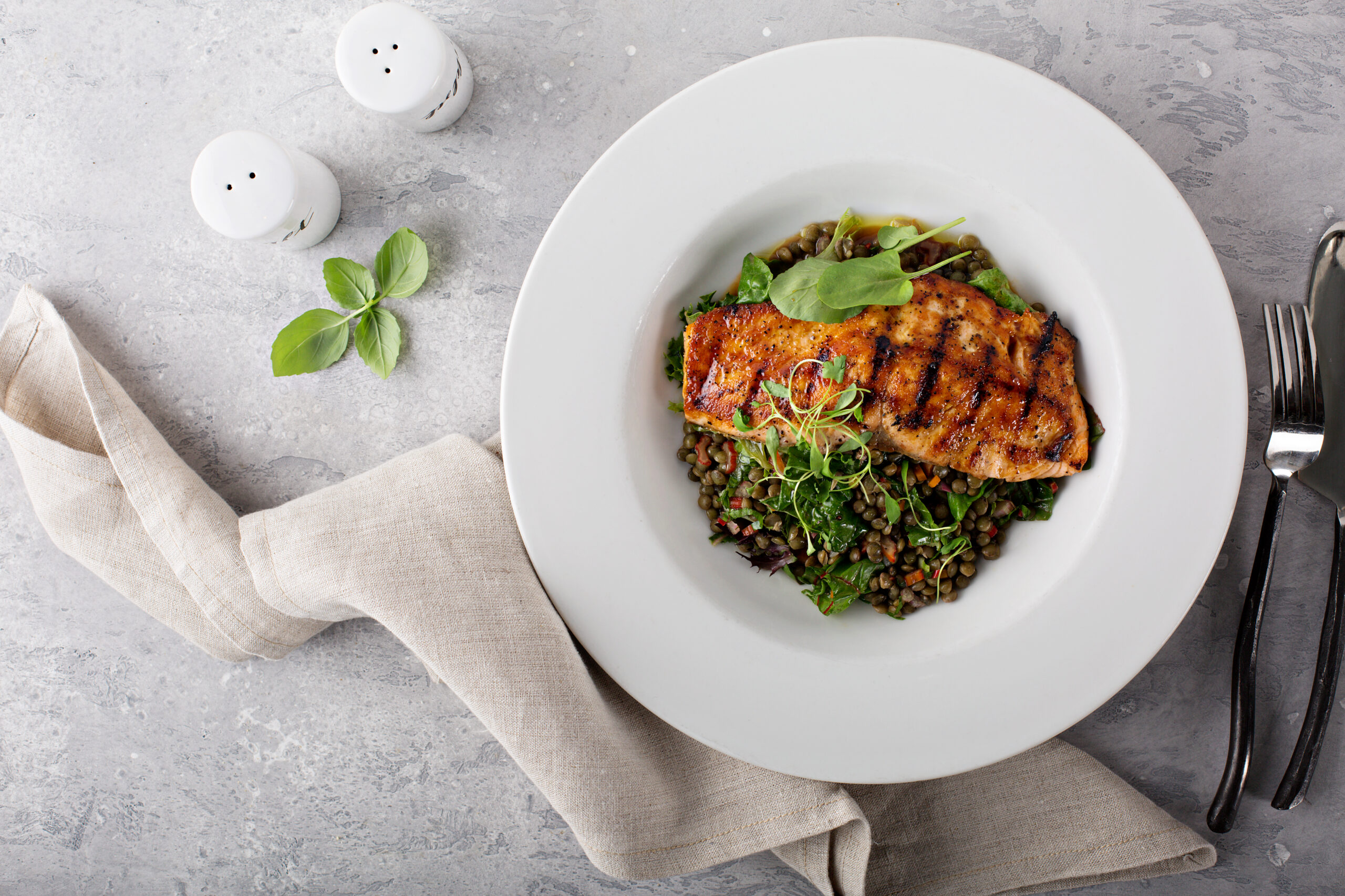 Lentejas con cebollino y salmón