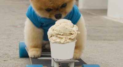 En su cuenta de Instagram, @jiffpom, podemos verlo degustando pizza, dispuesto a tomarse un café con leche o a punto de almorzar una gran hamburguesa con muchas patatas fritas. Y es que parece ser que una de las cosas que más le gusta a este perro humano es comer. Además, los dulces son su verdadera debilidad: le encantan los cupcakes y no puede resistirse a los helados. Incluso lo hemos visto saboreando un helado sobre una tabla de skate…