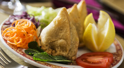 De entrada, no dejes de probar las tradicionales samosas de carne, cebolla, jengibre, semillas de cilantro y otras especias. Vienen con una salsa de menta picante que procura cierto frescor y con salsa raita, crema de yogur y pepino.