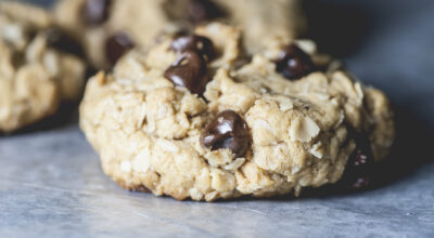 Galletitas de avena, plátano y perlitas de chocolate