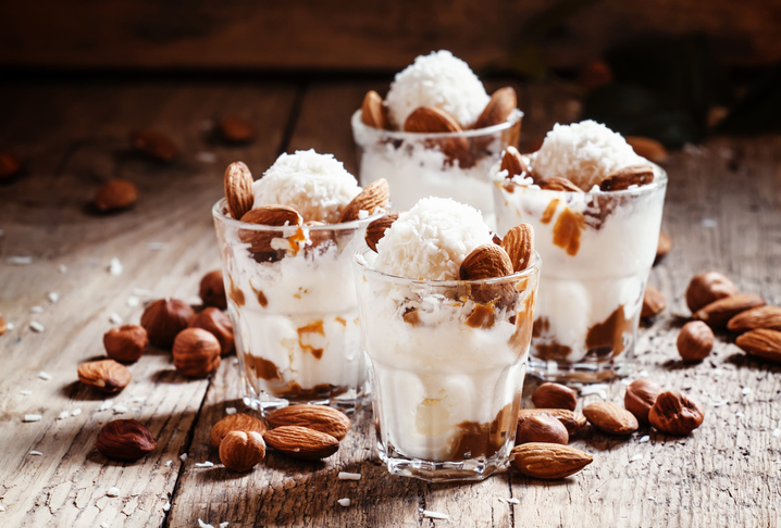 En lugar de leche de vaca, yogur y huevos, puedes utilizar productos vegetales para crear tu helado perfecto