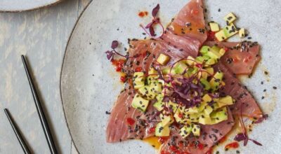 El yuzu es perfecto para aliñar algunas recetas elaboradas con pescados y mariscos crudos como, por ejemplo, un tartar de gambas como el que te presentamos a continuación.