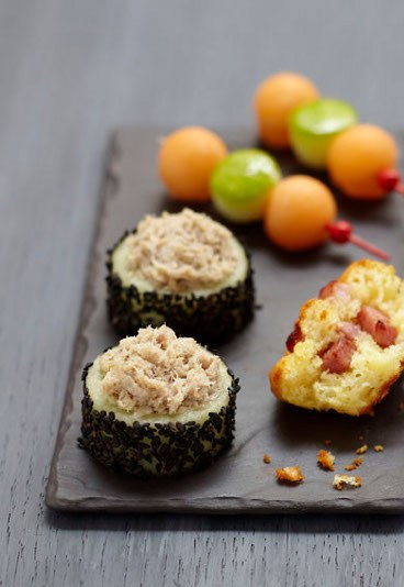 Pelar el pepino y cortar en rodajas de aproximadamente 1 cm de grosor. Vaciar con delicadez el interior de las rodajas y rellenar con los chicharrones. Rociar el exterior de las rodajas de pepino con aceite de oliva y pasarlo por las semillas de sésamo para que éstas se adhieran. Conservar los makis en la nevera hasta el momento de servir.