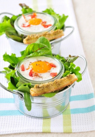 Huevos + tomates secos + nata líquida para cocinar: unos huevos cocotte presentados de una manera original. Son muy fáciles de preparar. Además, podemos cambiar de sabor si les añadimos hierbas provenzales, taquitos de bacon y hasta picatostes.
