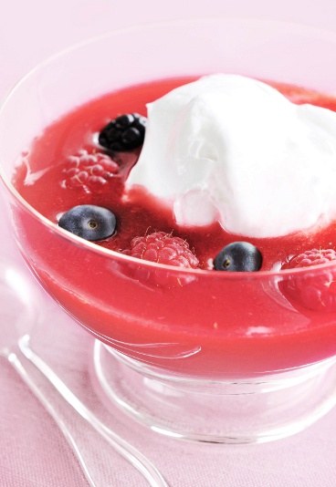 Frutas del bosque + azúcar+ sirope de granadina: son los ingredientes que necesitas para conseguir una buena sopa de frutas. Para acompañarla, sólo tienes que preparar un delicioso merengue.