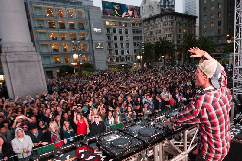 El dj y productor sueco Avicii ha ofrecido un macro concierto en Union Square Park, San Francisco, para celebrar el primer aniversario de la firma Denim & Supply Ralph Lauren.