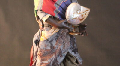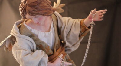 Figuras realizadas en parte (cabeza, manos y pies) en pasta cerámica, pintada en policromía al estilo barroco con tus nivel de detalle asombroso. Las telas y vestidos con los que se adornan y visten las figuras son antiguas lo que les proporciona un estilo especial si a esto le añadimos envases, joyas, calzado expresamente realizado para cada figura y distintos objetos como asientos con pintura marmolizada hacen de estas piezas pequeñas obras de arte exclusivas y únicas.