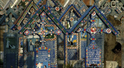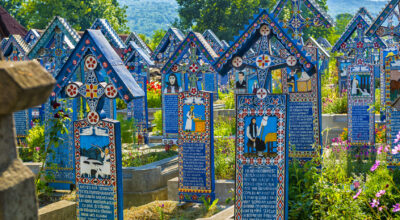 Quien diga que los cementerios tienen que ser un lugar triste es porque no ha visitado el Cementerio Alegre de Sapantza, en Rumanía.La aldea rumana no nos presenta un cementerio como los que estamos acostumbrados a ver y es que lo que esconde es una verdadera sorpresa llena de color. Las tumbas están decoradas con vistosas pinturas naíf y epitafios que, de forma poética, describen la vida de las personas que fallecieron. La muerte no es más que una invitación a la vida entre estas 800 lápidas.