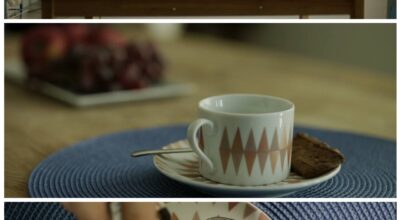 Primero, las frutas cambian de posición con respecto a la taza. Y, después, cambia la galleta de un tono más oscuro a un color más claro.