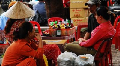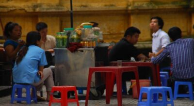 Gente comiendo en la calle en Hanoi