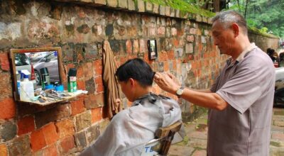Peluquero callejero en Hanoi
