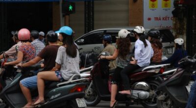 Motos en un semáforo en Hanoi