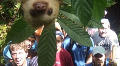 Se les conoce como "fotobombs" y son aquellos que se ponen delante de una cámara ajena para estropear una bella fotografía. En este caso, un perezoso se asoma en el momento del "click".