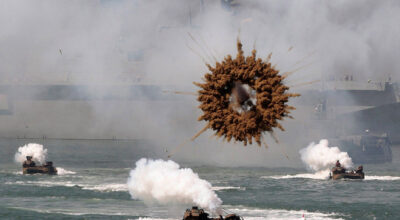 Explosión al vuelo durante un simulacro de operación de aterrizaje en Seúl, Corea del Sur.