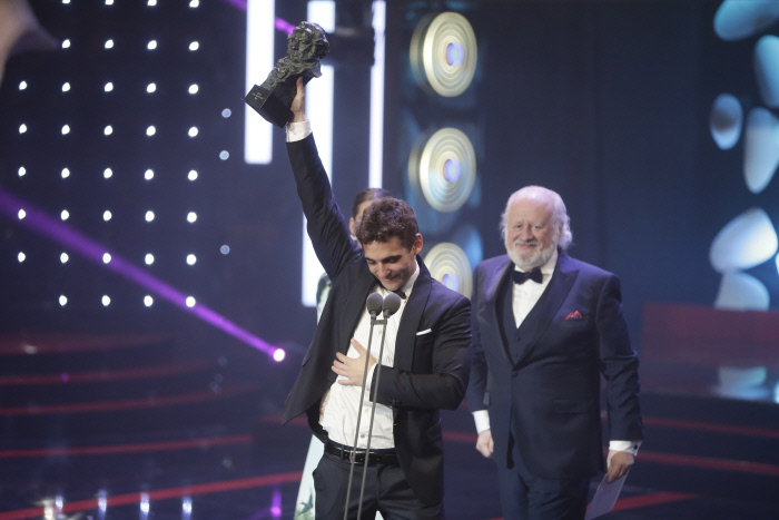 23:02. ¡Daniel Guzmán! Segundo Goya de su carrera (el primero fue en 2004) y segundo Goya para esta película. ¡Sube al escenario emocionadísimo!
