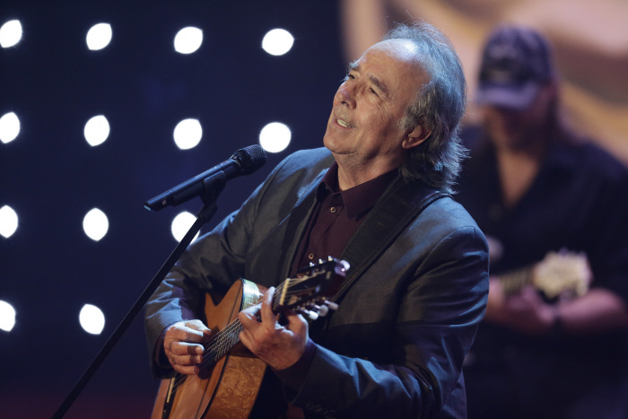 00:08. Vuelven los Goya después de una pequeña pausa con Serrat cantando. Hace unos minutos su hija Candela posaba también en la alfombra roja.