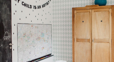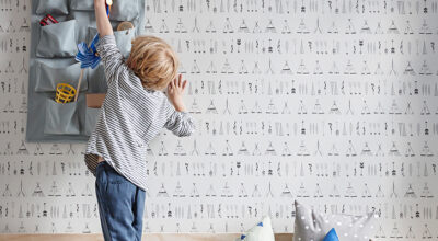 >No tienes por qué empapelar toda la habitación, elige una pared que sea la principal y que separe dos espacios (el de jugar y el de descanso) será suficiente. Por ejemplo, para incorporar rayas utiliza solo dos paredes de la habitación como máximo.