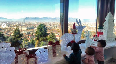 Con sus peques en un salón decorado 100% al más puro estilo navideño.