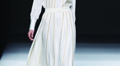 Tachuelas cosidas una por una, colores luminosos y aires setenteros. Así ve Teresa Helbig el próximo invierno, alejándose de los tópicos grises de esta época. En una fusión perfecta, chaquetas estructuradas conviven con shorts y minivestidos, en un diálogo de colores donde el amarillo y el coral se ven matizados por negros, blancos y tonos camel.