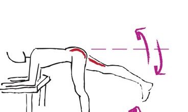 Túmbate boca abajo con las piernas estiradas, y coloca las manos sobre tu cabeza, abriendo bien los codos. Ahora, tensa los muslos, y levanta una pierna mientras tomas aire. Después intenta bajar la pierna, pero sin que llegue a tocar el suelo. Mientras bajas la pierna, debes expulsar el aire. En esta ocasión, debes dejar los pies relajados. Es muy importante que durante este ejercicio y sus repeticiones, no levantes la cadera. Éste es un trabajo del núcleo de nuestro cuerpo. Repite esta postura con cada pierna, 10 veces, y ve aumentando conforme la vayas dominando.