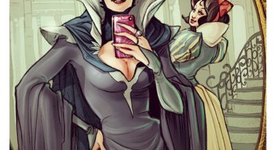 También hay algunos ególatras en esta colección: Hércules muestra su escultural anatomía frente al espejo, mientras Ariel, muy sensual, nos enseña su nuevo bikini. Simona se ha atrevido incluso a ilustrar la mítica frase «Espejo mágico, dime una cosa: ¿quién en este reino es la más hermosa?», de la bruja de Blancanieves…