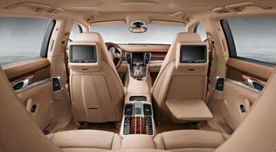 Un Porsche pensado para los pasajeros que viajan en los asientos traseros. Espacio extra para estirarse, reposapiés y reposacabezas que se ajustan de manera electrónica. Potencia y comodidad en un solo automóvil. Por supuesto, no le falta el control individual del clima, persianas para protegerte del sol, consola central de 120 voltios para cargar tus dispositivos móviles, excelente iluminación y almacenamiento.