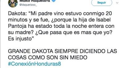 ¡Zascas a troche y moche en el último debate de Supervivientes! Conexión Honduras y su presentador, Jordi González, fueron testigos de cómo una de las concursantes menos conocidas de esta edición mostraba su indignación frente a las múltiples muestras de apoyo a Isabel Pantoja por parte del equipo del reality. ¡Y no es para menos! Después de aguantar durante más de dos meses el favoritismo desmedido a la tonadillera, el resto de supervivientes empiezan a estar ya un poquito hasta el moño de que les traten como ‘‘jugadores de segunda’’ y empiezan a sacar las uñas frente a las injusticias, especialmente Dakota, que no se ha cortado un pelo y ha repartido más dardos envenenados que los que Kiko Rivera regaló a Aneth antes de su llegada a España. Aunque, teniendo en cuenta el éxito rotundo del programa, en gran parte provocado por la participación de la viuda de Paquirri, no es de extrañar que Mediaset se pase las quejas del resto por el Arco del Triunfo y haga oídos sordos a las peticiones de sus no tan ‘’queridos’’ náufragos.