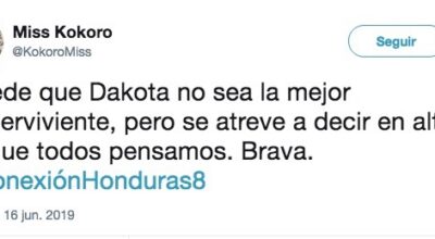 ‘’Dakota diciendo verdades como puños’’, ‘’Dakota destapando gala tras gala los dobles raseros y el favoritismo de la organización hacia la Pantoja’’, ‘’Imagina tener los ovarios de Dakota para destapar a Supervivientes dos veces en una noche’’. Y así podríamos seguir hasta la semifinal. La audiencia adora a Dakota, ven en ella a una revolucionaria, a una justiciera, a una líder nata y quieren llevarla hasta la gran final. ¡Que tiemble el equipo entero de Los Vengadores porque Dakota es capaz de partir en mil trozos el escudo del Capitán América y hacerse con los pedazos unas mini cucharas para comerse mejor los 4 granos de arroz que le dan en la isla!