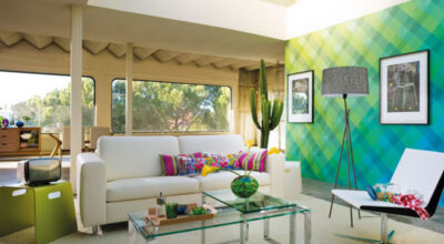 Para las paredes puedes utilizar vinilos con formas geométricas que darán un toque de elegancia a tu casa. Para la iluminación, coloca lámparas de pie, como la de la imagen (pie de salón Mara, 115€ de El Corte Inglés) ¡Quedará de lo más chic!