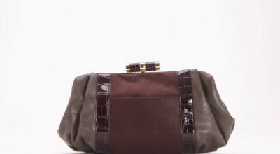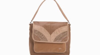 Bolso camel de asa con detalles de estampado de serpiene y de cocodrilo
