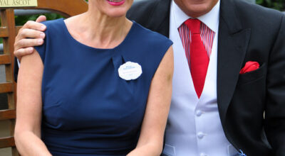 Steffi Graffi en Ascot con vestido azul klein y tocado negro.