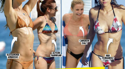 Escuálidas bajo el sol. El biquini desvela la esquelética realidad del verano de Alessandra Ambrosio, Cameron Diaz, Ana Fernández y unas cuantas celebrities más.