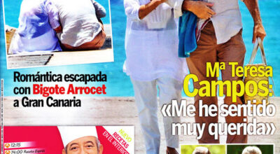 Semana dedica prácticamente toda su portada de este miércoles a la escapada romántica de María Teresa Campos y Bigote Arrocet. La inesperada pareja ha disfrutado de unas agradables vacaciones en las tranquilas playas canarias.