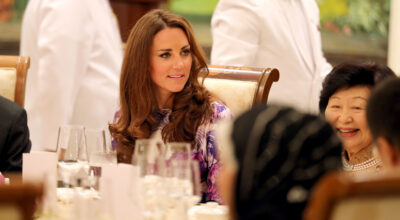 La familia real se toma el momento de la comida muy en serio. Para no parecer extraños, Kate y William deben asegurarse de sostener el cuchillo en la mano derecha y el tenedor en la izquierda con la sierra hacia abajo. Y en lugar de apuñalar su comida, la balancean en la parte trasera de su tenedor y luego se la llevan a la boca. ¡Acrobático!