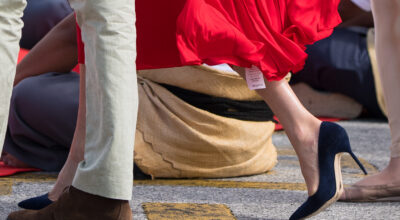 Otro error de protocolo: se supone que las princesas británicas deben llevar vestidos o faldas con un largo no más corto que por encima de la rodilla. Y, en el caso de llevar un vestido que deje al descubierto parte considerable de la pierna, entonces se debería usar medias.
