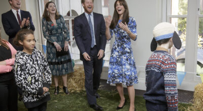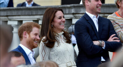 El 26 de octubre de 2015, el príncipe William, el príncipe Harry y Kate Middleton se ríen mientras juegan con los niños.