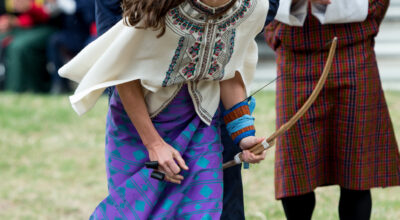 En un viaje oficial, Kate Middleton intentando el tiro con arco en Thimphu, la capital de Bután.